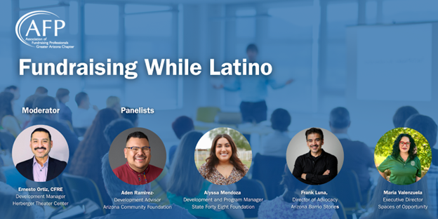 As part of our "Fundraising While" series and our commitment to Inclusion, Diversity, Equity, and Access (IDEA), the Association of Fundraising Professionals Greater Arizona Chapter invites you to join us for a special Hispanic Heritage Month program: “Fundraising While Latino.”