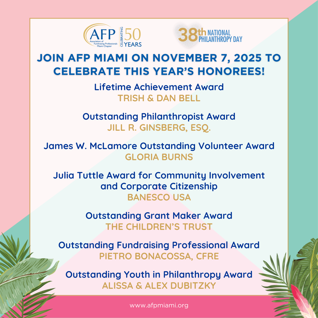 For 38 years, National Philanthropy Day has recognized extraordinary individuals and organizations making a difference. This year’s honorees will join a distinguished list of past awardees who have shaped Miami’s philanthropic landscape.